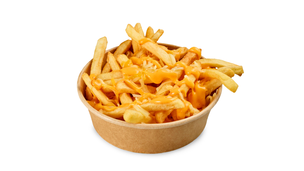 Pommes überbacken mit Chili Cheese Sauce und Käse.